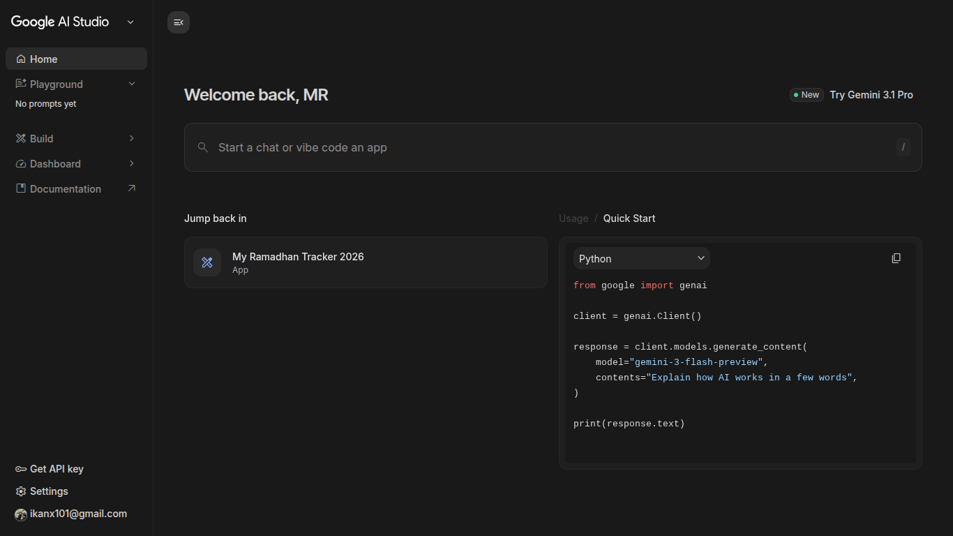 Ada banyak situs yang menyediakan jasa vibe coding namun pilihan saya awalnya jatuh kepada Google Gemini. Saya melihat beberapa video dan shorts yang memperlihatkan kapabilitas dari Gemini untuk build apps. Namun setelah saya coba, ternyata saya baru menyadari bahwa layanan Google yang benar-benar diperuntukkan untuk vibe coding adalah Google AI Studio.