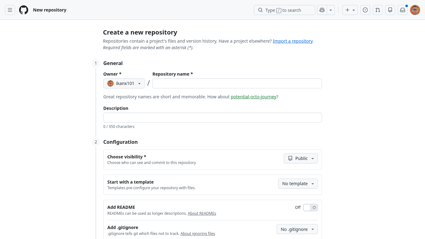 Di Github saya membuat satu repository baru.