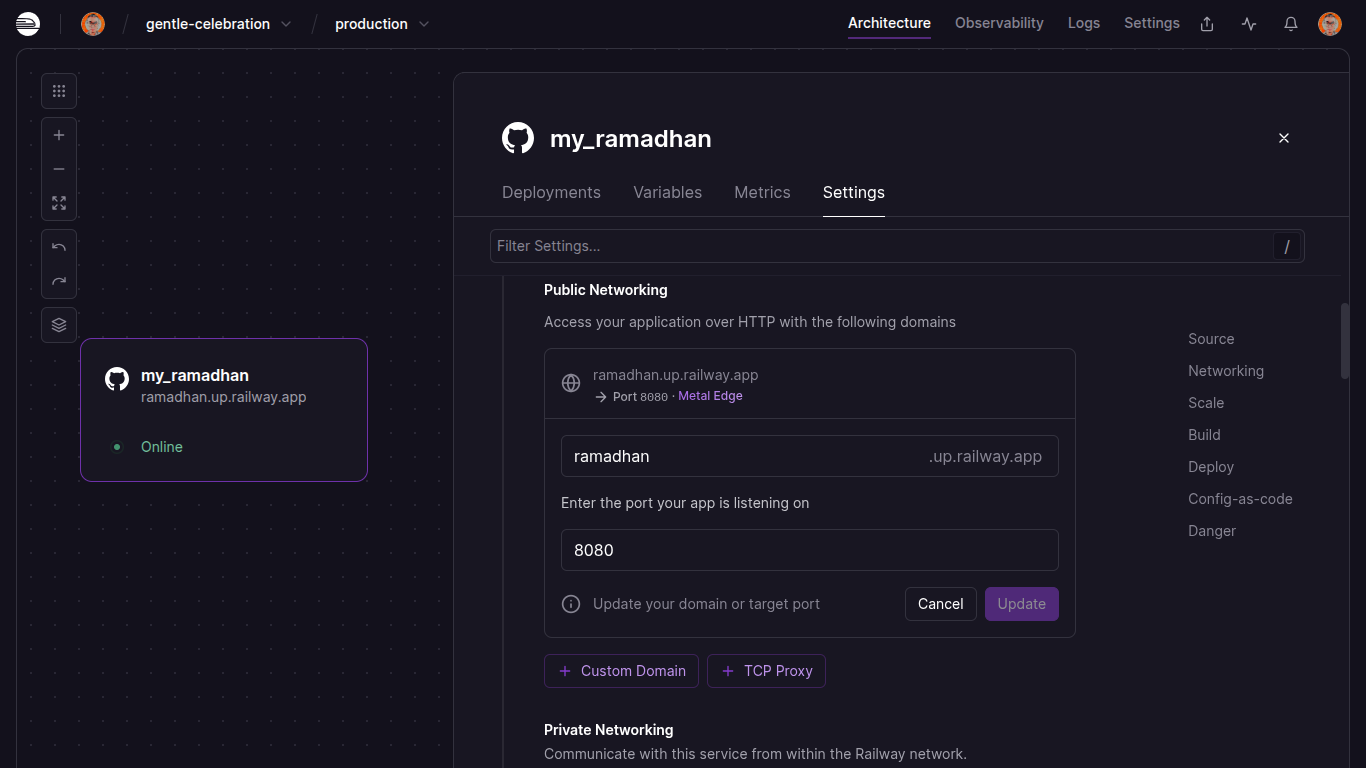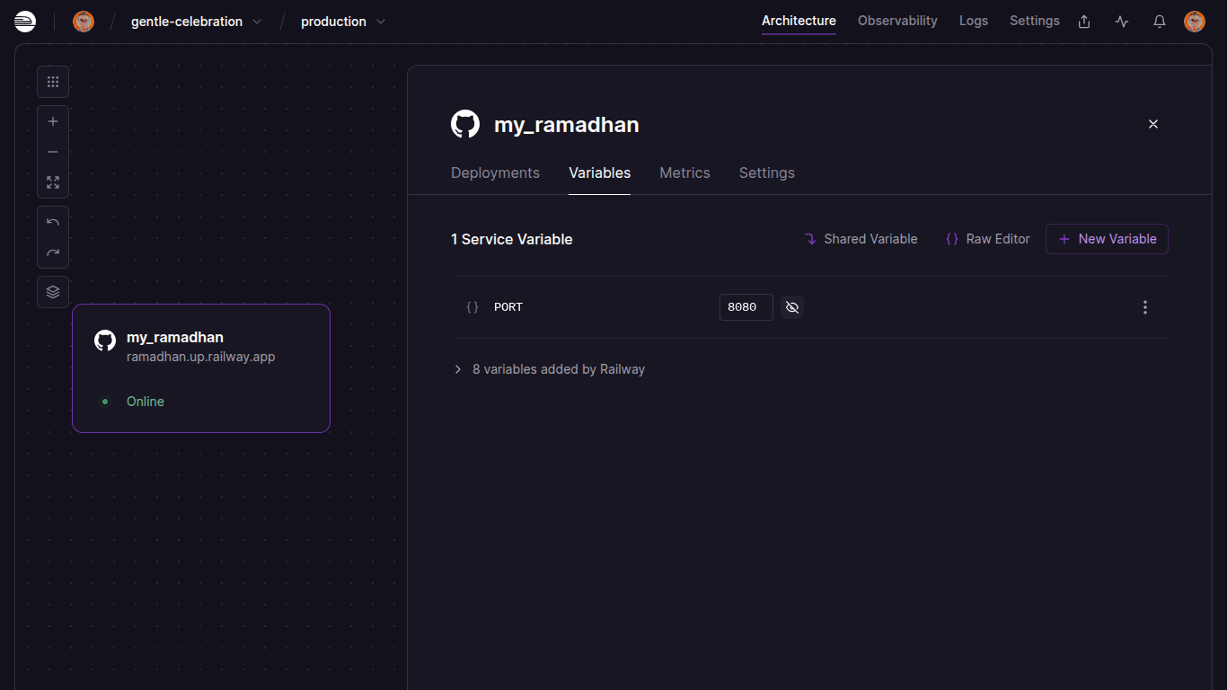 - Khusus untuk deploying apps, saya memilih untuk men-deploy di Railway karena sudah familiar dan memang berlangganan sejak beberapa tahun silam.